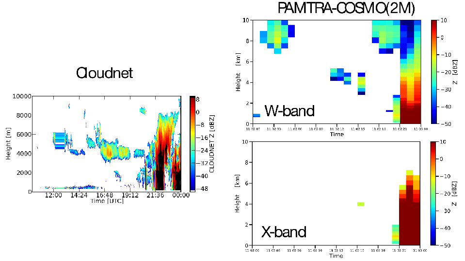 Finally, we collaborated on work concerning ground-based cloud radar together with a radar simulator to evaluate the simulation. With the help of these studies, we applied the radar forward opera-tor based on recent work performed at TROPOS and the CR-SIM and PAMTRA to the output from our model data.