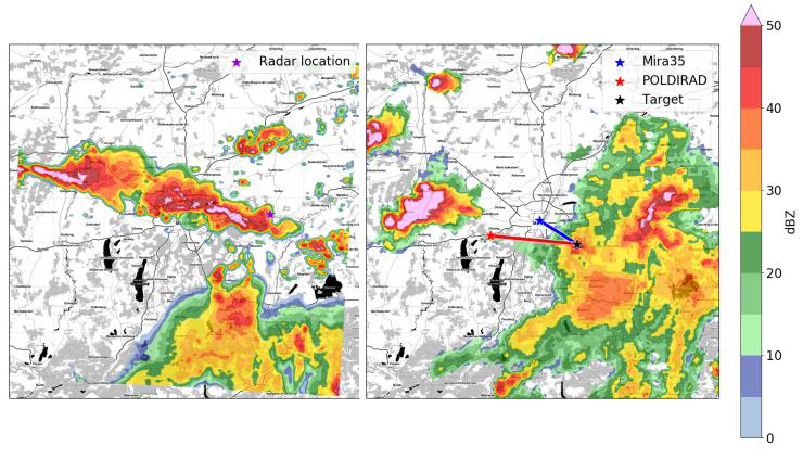 In phase 1, the concept of combining two spatially separated radars to retrieve the microphysical properties of ice hydrometeors was investigated, pairing dual-frequency measurements with polarimetry from an oblique angle.